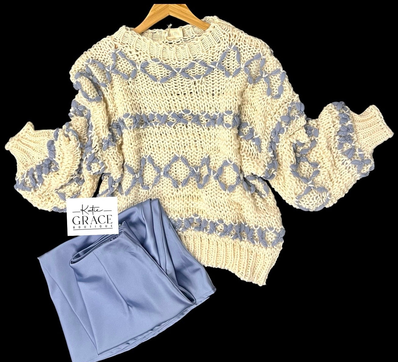 Crochet sweater, with pink yarns. Available in S-XL. $44