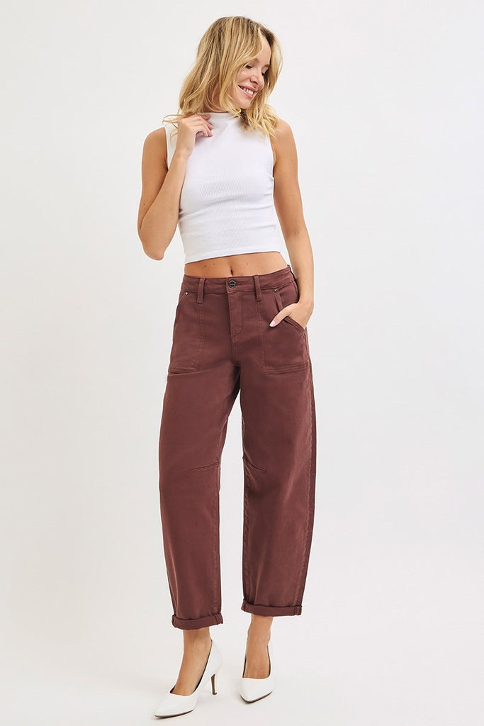 HIGH RISE ANKLE CUFFED BARREL PANTS, 0-15. $56