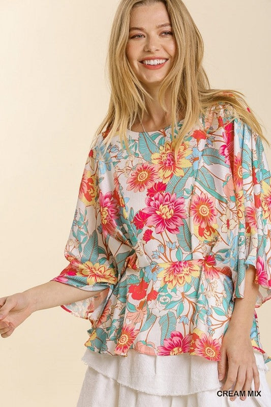 Half sleeve, floral peplum hem blouse. Available in S-L. $28