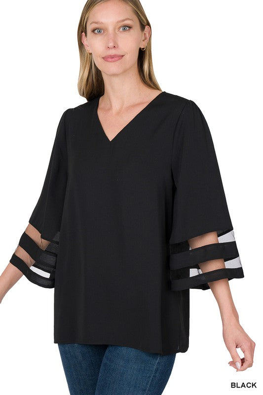 3/4 sleeve wide sleeve blouse with a v neckline. Available in S-3XL. $19/$21