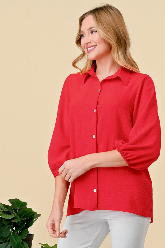 3/4 sleeve, button down blouse. Available in S-3XL. $34/$36
