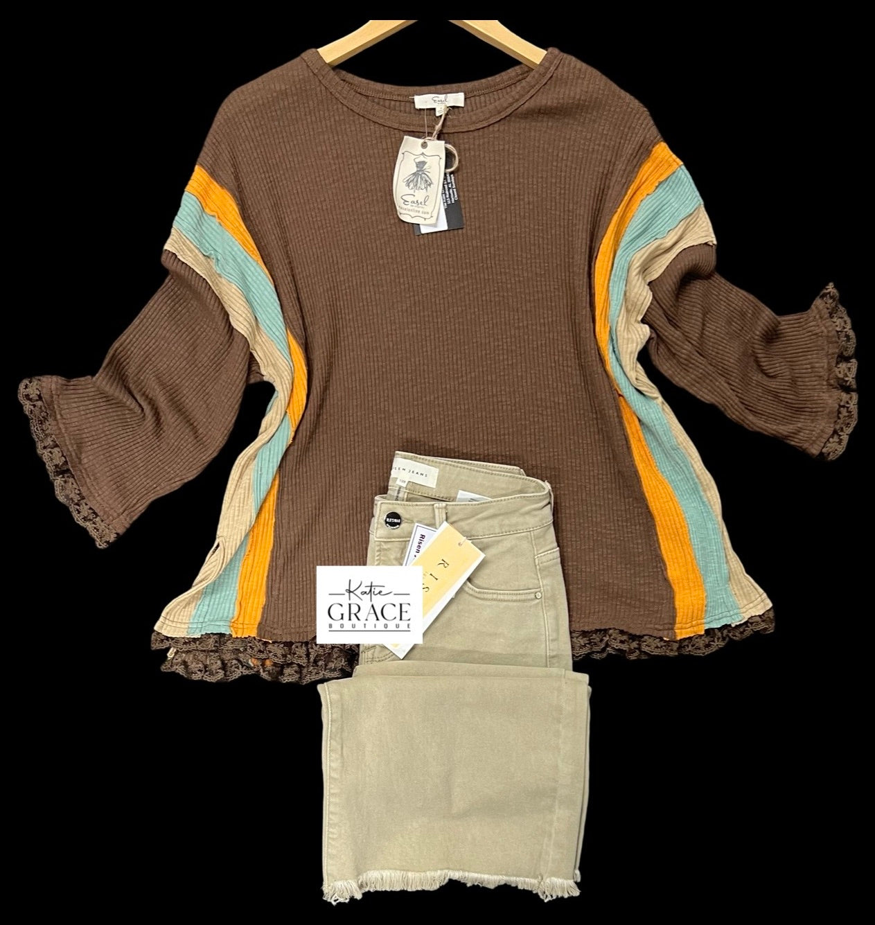 3/4 sleeve ribbed top. Available in S-3XL. $42/$44