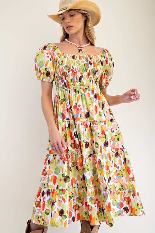 Puff sleeve, smocked dress with pockets. Available in S-L. $52