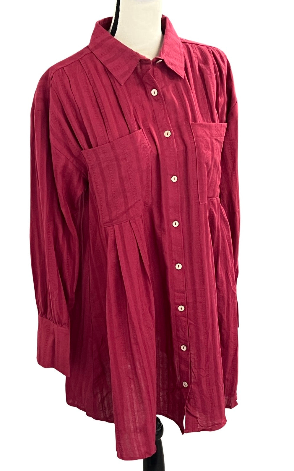 Long sleeve button down with pleat details. S-L. $36
