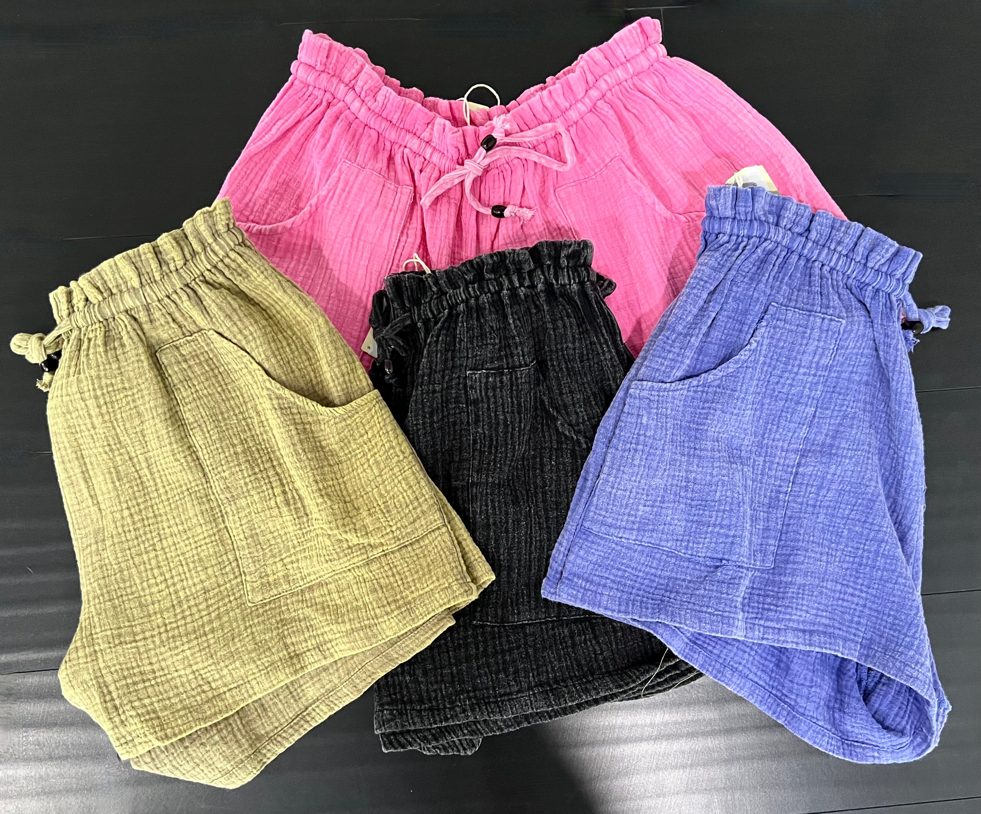 Soft cotton shorts with pockets and drawstring waist. Available in S-L. $34