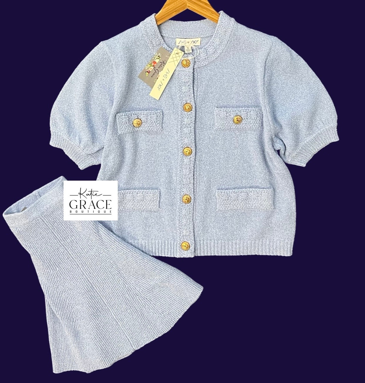 Choose from button down sweater $45 or sweater skirt $36. Available in S-L.