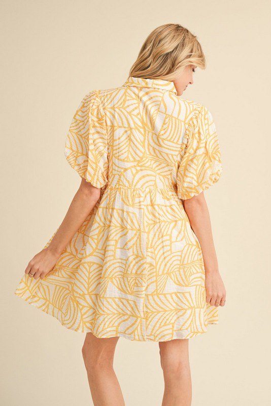 Puff sleeve dress. Lined with pockets. Available in Red or Yellow. Available in S-L. $44